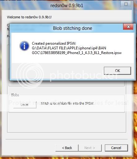 Click ok và đợi redsnow tiến hành build fw, khi hoàn thành sẽ có kết quả sau