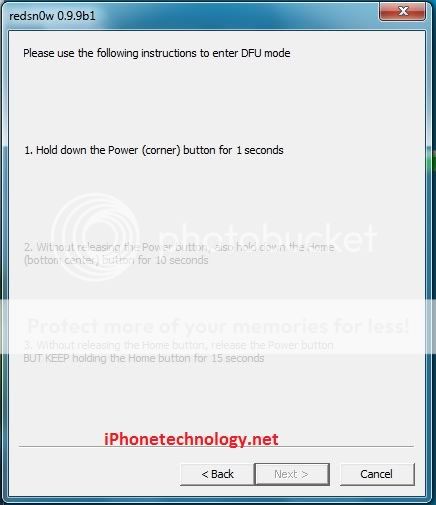 Làm theo yêu cầu của redsnow để đưa máy về DFU
