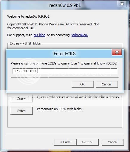 Bước tiếp theo chọn Query -("Query" = "Hỏi" Cydia server xem có SHSH nào của máy. Có một đoạn SHSH hay có toàn bộ )