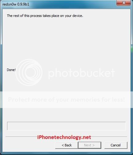 Thả nút nguồn vẫn tiếp tục giữ phím Home, Việc còn lại redsnow tự làm
